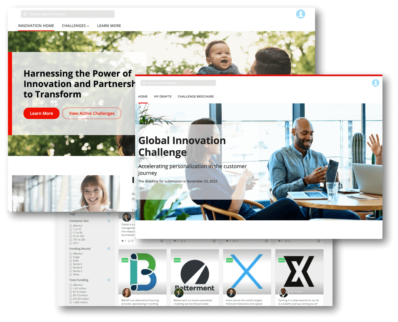 A large corporation grappled with stagnant innovation due to disjointed processes and lack of employee engagement. With innovation scattered and uncoordinated, there was a critical need to centralize and invigorate the innovation pipeline.